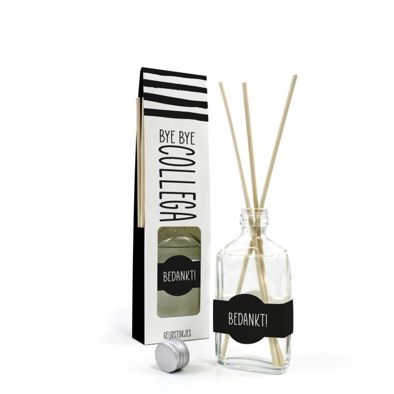 Geurstokjes verpakt in een mooie zwart/wit verpakking met lieve tekst. Kijk ook even naar de achterkant.