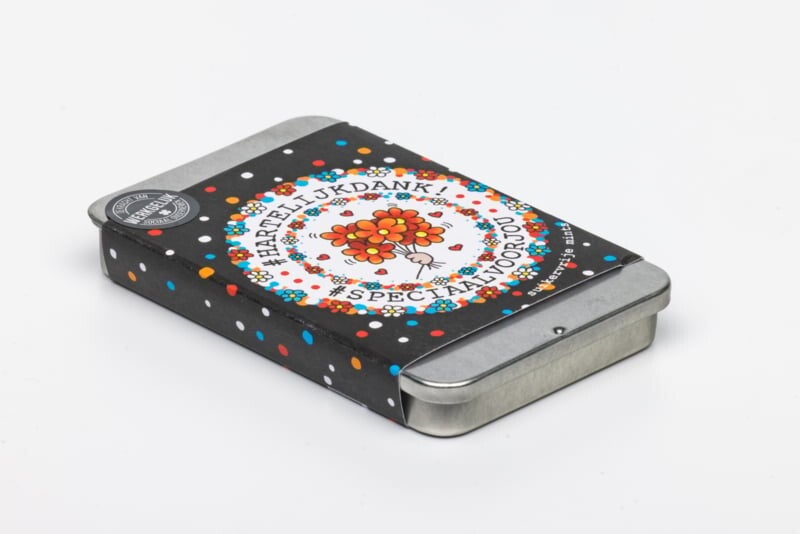 Het blikje is gevuld met suikervrije smintjes en is hervulbaar.