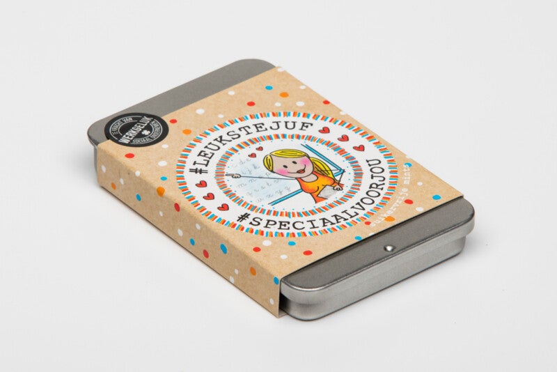 Super leuk blikje, om kado te geven. Met veel verschillende teksten leverbaar.
