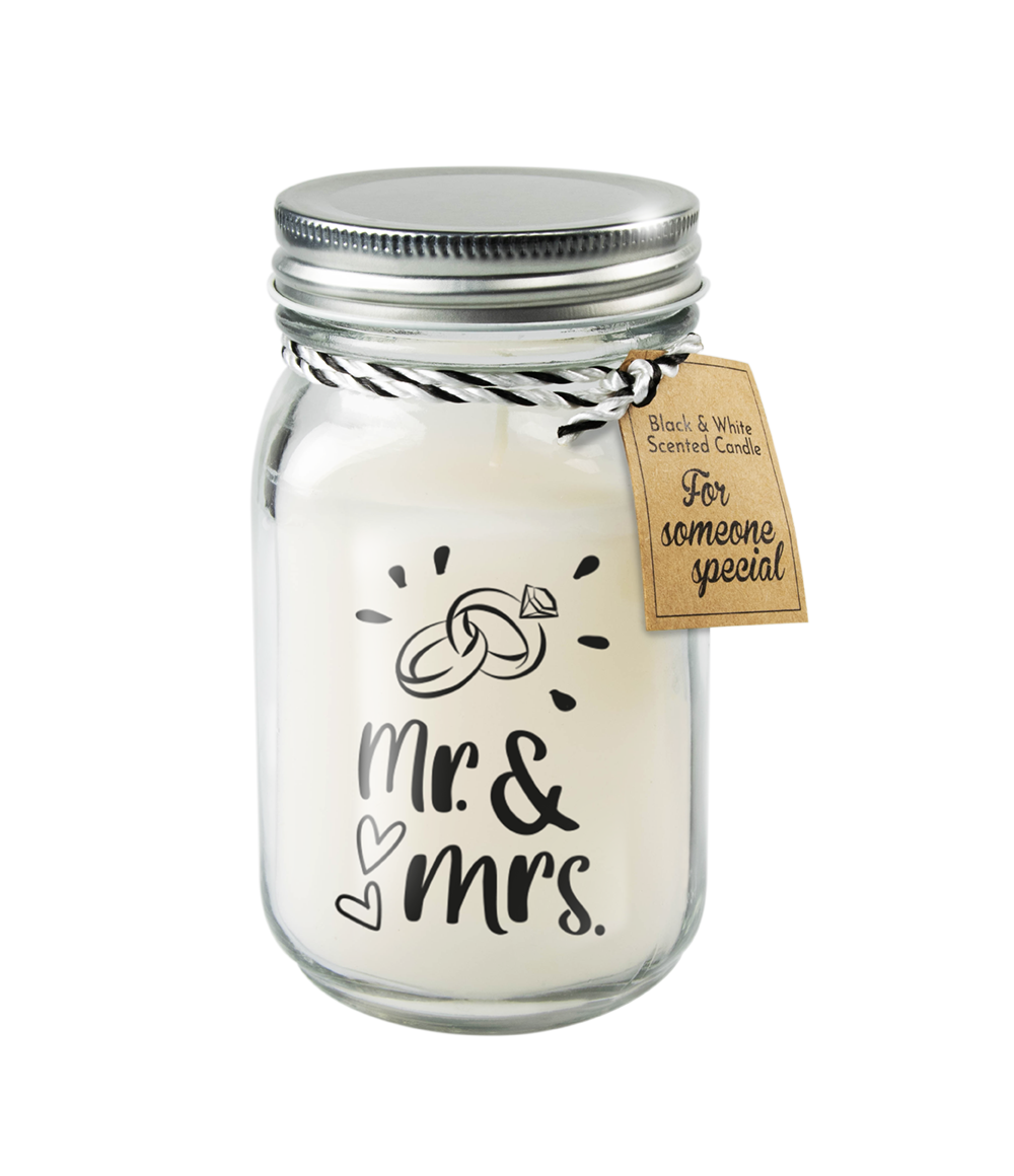 De kaars in de glazenpot is een geurkaars, en ruikt naar vanille.
