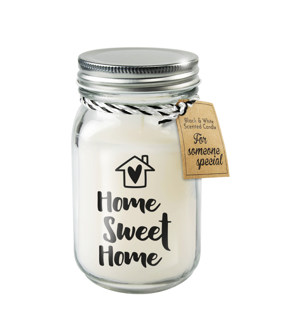 De kaars in de glazenpot is een geurkaars, en ruikt naar vanille.