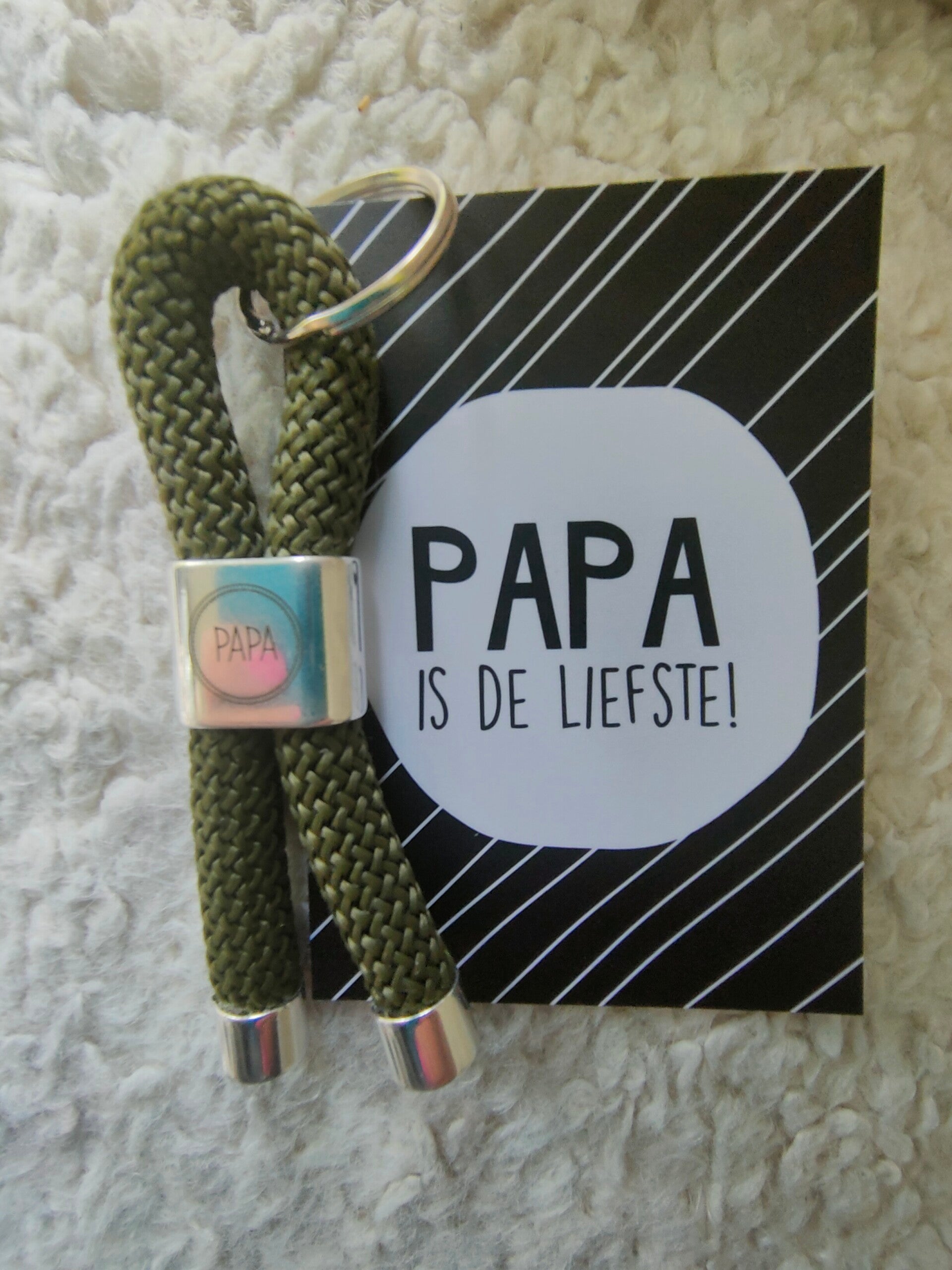 Welke papa krijgt zo gave sleutelhanger ? gemaakt van maritiem koord. In de schuiver staat papa gelaserd. Het kaartje wordt meegeleverd en wordt door ons leuk ingepakt.