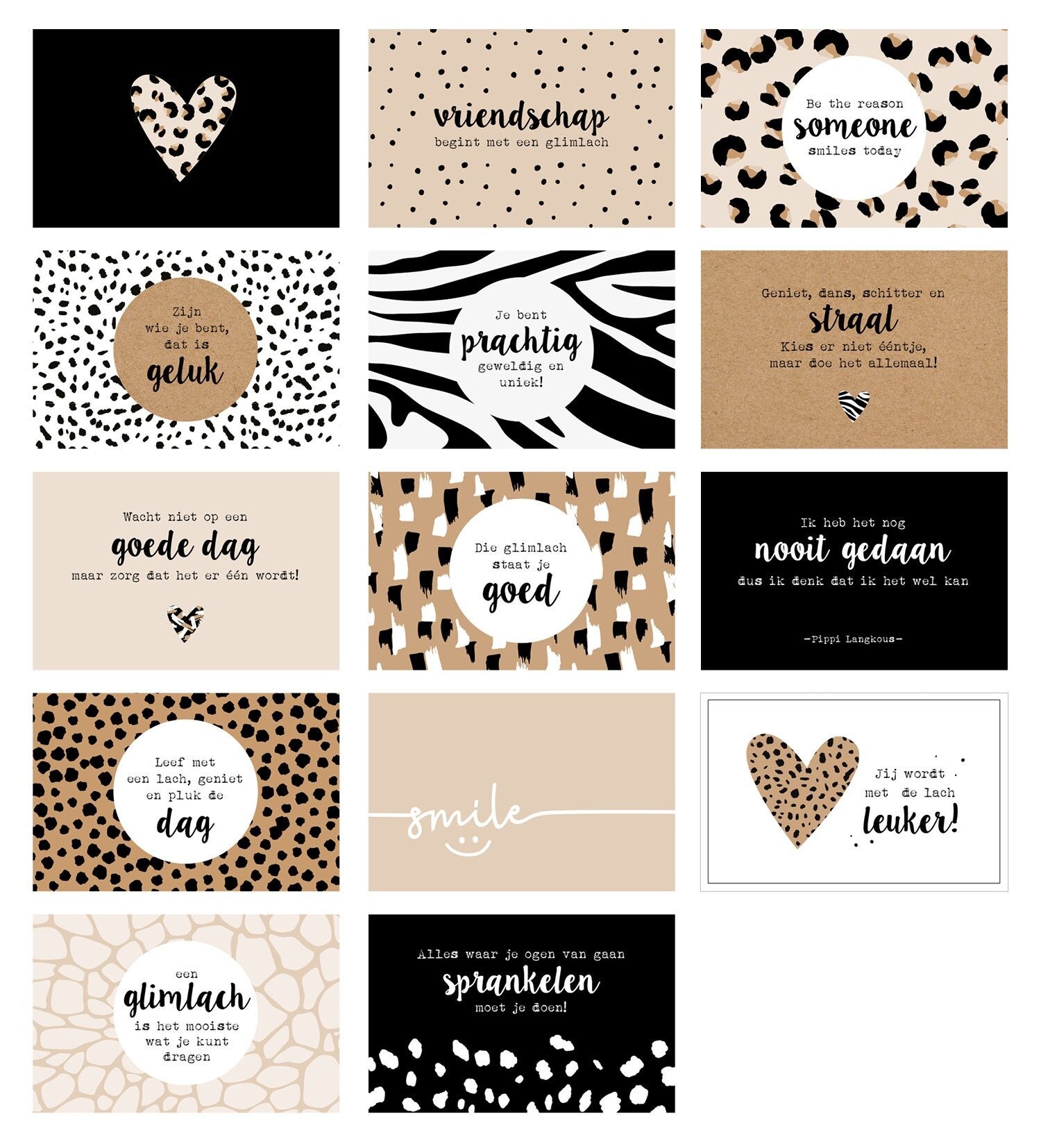 Positieve woorden geven positieve gedachten, positieve energie, een blij gevoel. Een paar mooie woorden zijn soms al genoeg om een groots gevoel te krijgen. Een glimlach op je gezicht te toveren. Daarom dit doosje, een 'Doosje met een Glimlach'. Een mooi bewaardoosje met 14 'goed gevoel' kaartjes. 14 mooie kaartjes om twee weken lang, iedere dag te beginnen met een positieve start. Be happy!