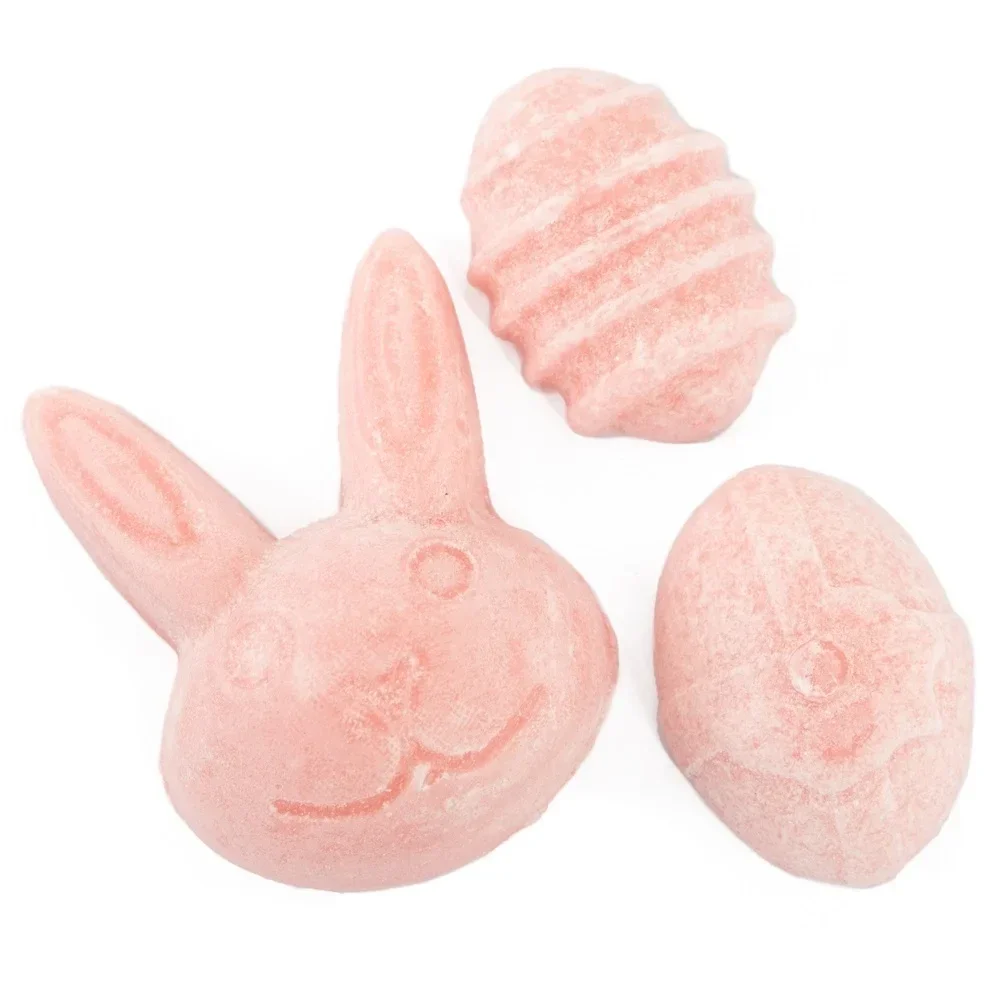 3 heerlijk ruikende amber "blokjes" paashaas en 2 eitjes, verpakt in een organza zakje.