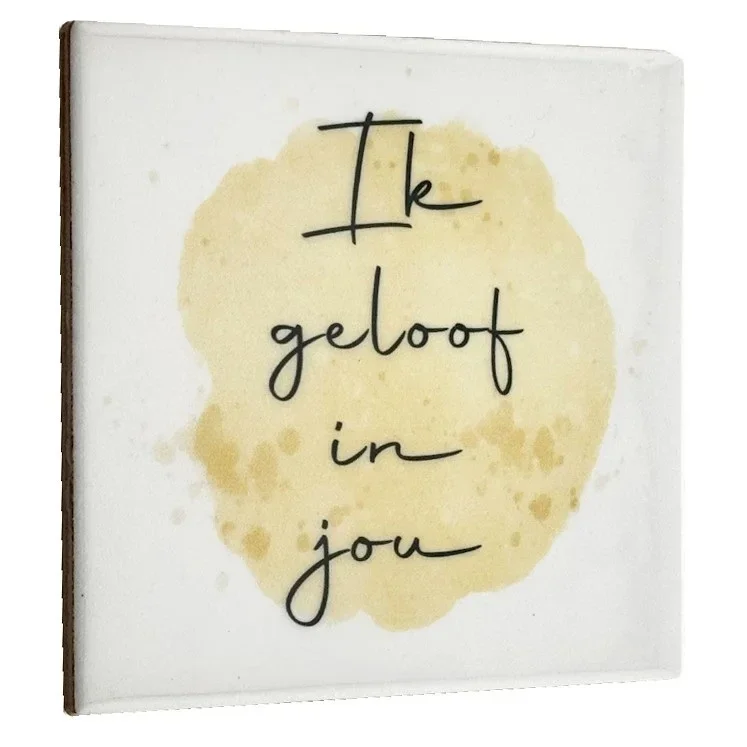 Zet het tegeltje op een mini schildersezeltje of ijzeren houder. Liever ophangen? Dat kan ook het tegeltje wordt geleverd met een ophanghaakje.
