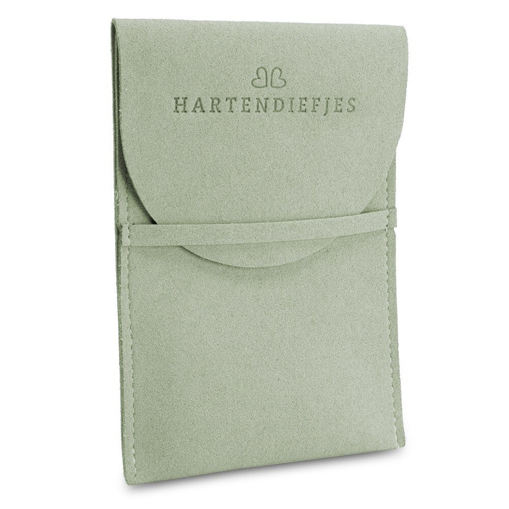 Eventueel kun je een suède zakje mee bestellen formaat, 10,8 x 7,6 cm
