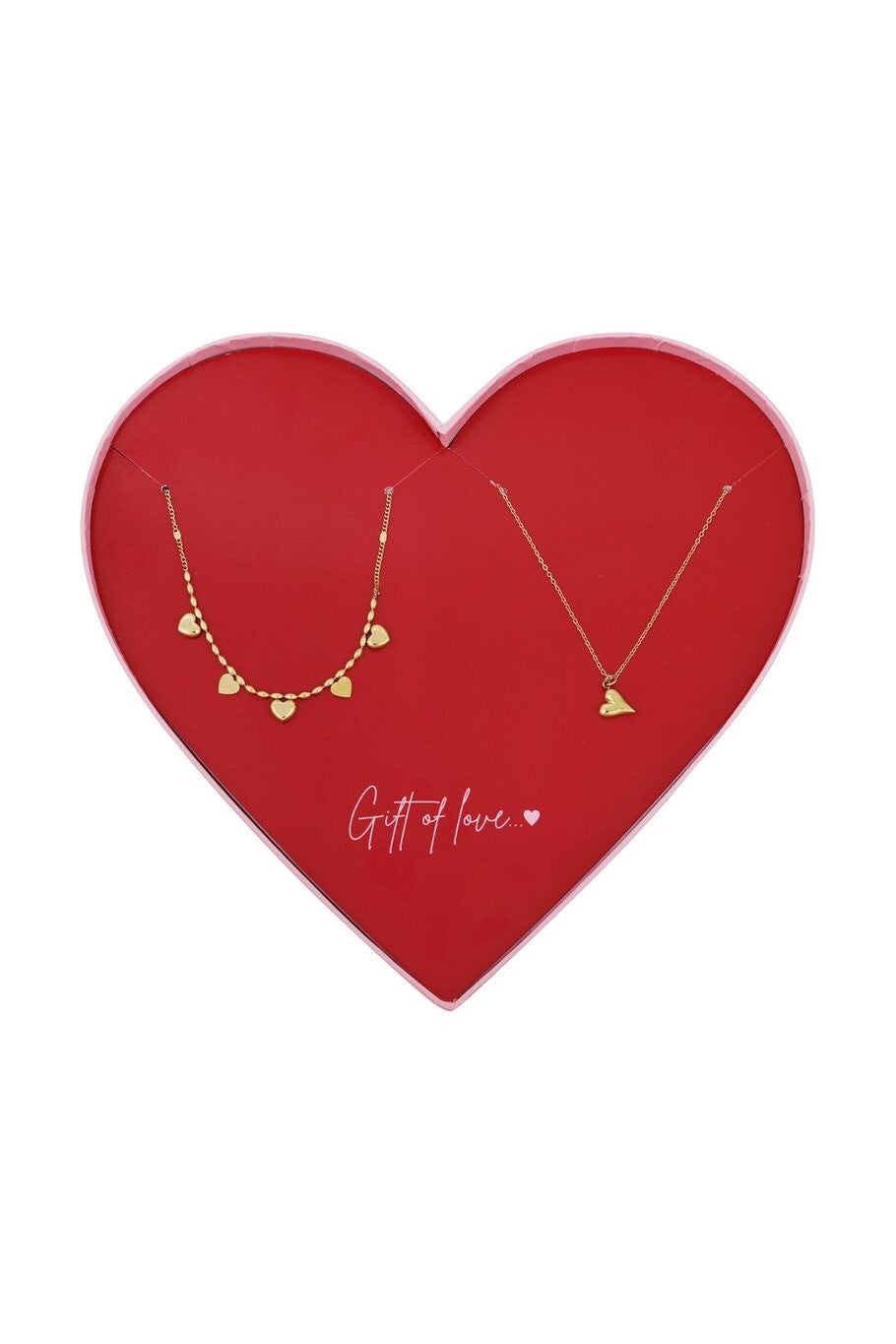 2 rvs kettingen 1 met 5 hartjes en 1 met 1 hartje, in een luxe kado verpakking.