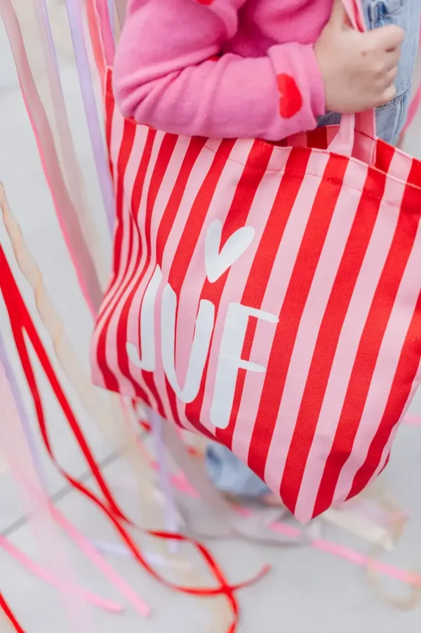 De tas is herbruikbaar en leuk als boodschappentas, schoudertas of strandtas.
