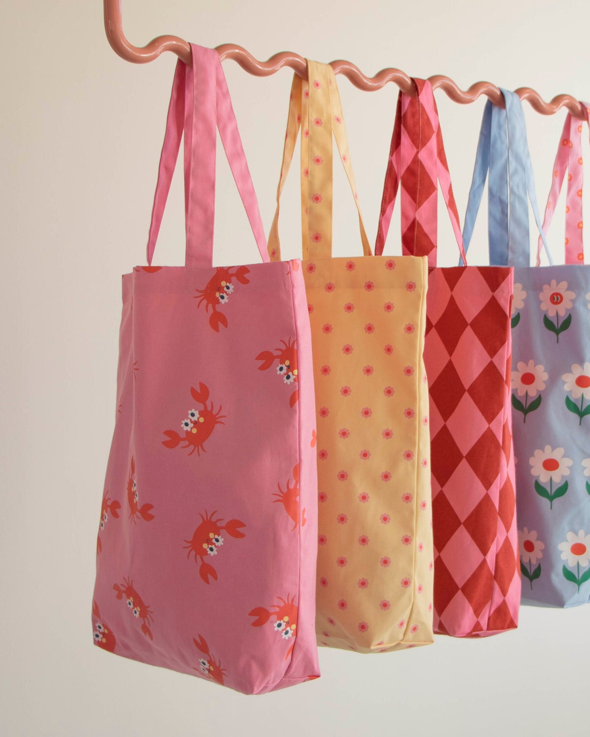 Katoenen tas, met bloementjes afbeeldingen op beide kanten.