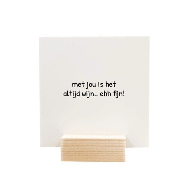Je ontvangt één houdertje, gemaakt van duurzaam hout, met daarin een stevig Forex bordje van 9 x 9 cm