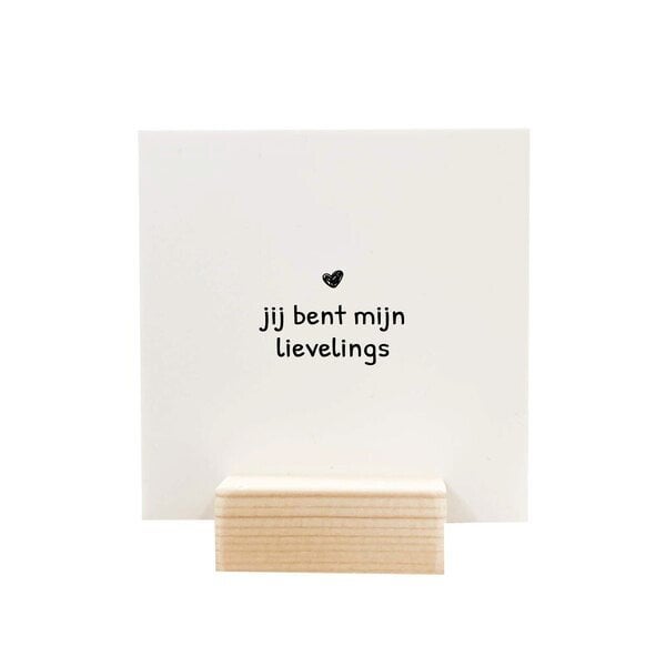Je ontvangt één houdertje, gemaakt van duurzaam hout, met daarin een stevig Forex bordje van 9 x 9 cm