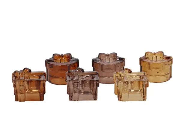 Leuke glazen ronde kaarsenstandaards , in de vorm van een kadootje